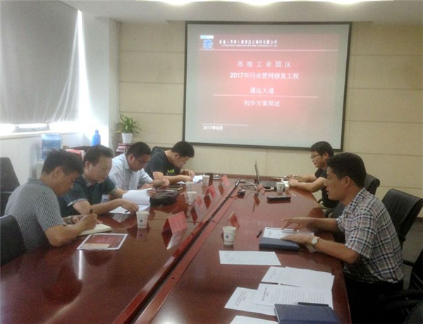 根據(jù)園區(qū)污水規(guī)劃修編意見和2017年建設計劃,開發(fā)公司啟動商住區(qū)通達大道污水維修項目。為確保維修方案安全可靠,近日,開發(fā)公司組織召開通達大道污水管道改造工程方案評審會,特邀設計、建設、規(guī)劃和施工四個方面共五名專家,并邀請園區(qū)規(guī)劃建設局相關處室人員參加會議。