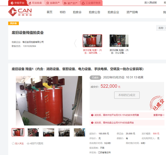 開發(fā)公司一批廢舊物資網(wǎng)上競拍成功