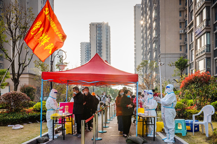 一支黨員先鋒隊(duì),全力打贏疫情防控阻擊戰(zhàn) 疫情就是命令。為有序開展園區(qū)大規(guī)模區(qū)域核酸檢測(cè)工作,園區(qū)機(jī)關(guān)、企事業(yè)單位黨員干部積極響應(yīng)黨工委號(hào)召,火速集結(jié),爭(zhēng)分奪秒開赴核酸檢測(cè)預(yù)定點(diǎn)位。從凌晨的物資準(zhǔn)備、早上5點(diǎn)的核酸檢測(cè),到夜間的“掃樓行動(dòng)”,忙碌地穿梭于樓棟之間的黨員突擊隊(duì)員,堅(jiān)決落實(shí)好“不落一戶,不漏一人”的防控要求。共產(chǎn)黨員、園區(qū)安委辦綜合協(xié)調(diào)與巡查督查處副處長(zhǎng)朱婷婷說(shuō):“在這個(gè)疫情防控的緊要時(shí)期,作為一名共產(chǎn)黨員,拉得出、打得響,是我對(duì)自己最基本的要求。”在履行防控職責(zé)同時(shí),黨員志愿者和醫(yī)護(hù)人員跨前一步,為社區(qū)獨(dú)居老人、行動(dòng)不便老人提供送檢上門等貼心服務(wù),受到群眾廣泛點(diǎn)贊。