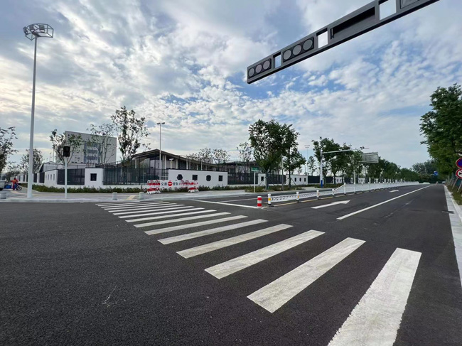 為保障宿遷市蘇州外國(guó)語(yǔ)實(shí)驗(yàn)學(xué)校上下學(xué)期間周邊道路安全通暢,市政工程部根據(jù)園區(qū)現(xiàn)行道路情況,結(jié)合交通行政主管部門(mén)意見(jiàn),在學(xué)校周邊道路設(shè)置學(xué)校警示牌、震蕩標(biāo)線(xiàn)和部分道路中間增加隔離護(hù)欄等內(nèi)容。