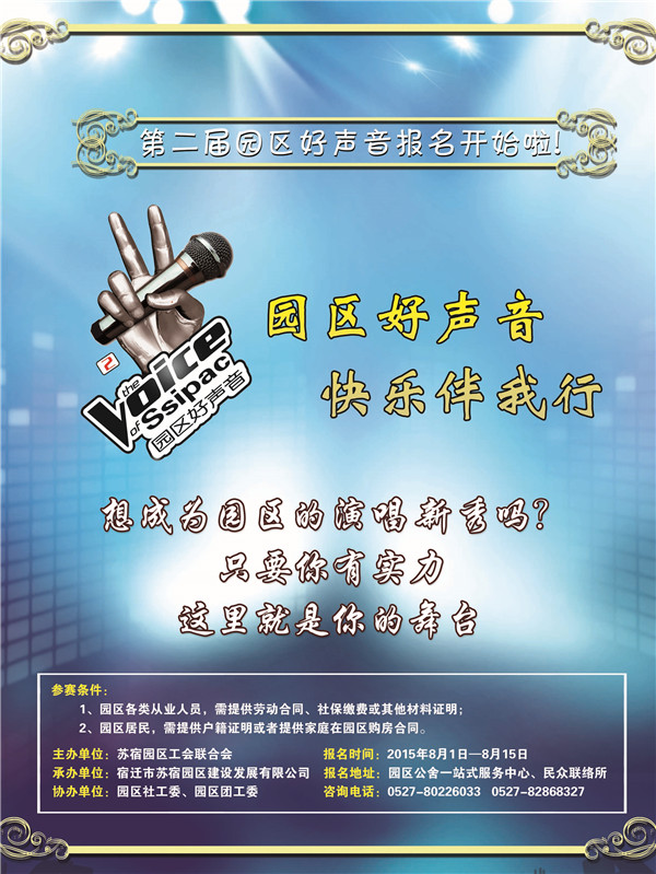 會(huì)議指出,去年舉辦的首屆“園區(qū)好聲音”吸引了園區(qū)150多名職工居民參與,引起了不小的反響,受到了社會(huì)的廣泛關(guān)注和一致好評(píng)。園區(qū)工委領(lǐng)導(dǎo)對(duì)舉辦第二屆“園區(qū)好聲音”活動(dòng)給予高度重視和支持,舉辦該項(xiàng)活動(dòng)旨在繼續(xù)促進(jìn)園區(qū)文化事業(yè)發(fā)展,豐富區(qū)內(nèi)廣大職工群眾業(yè)余文化生活,不斷擴(kuò)大和提升園區(qū)知名度和影響力。會(huì)議要求,組委會(huì)全體人員要充分重視,周密組織,要有詳細(xì)的工作計(jì)劃和方案;要群策群力,措施有力,保證效果;要加強(qiáng)統(tǒng)籌,形成合力,做到在各個(gè)環(huán)節(jié)上聯(lián)系到位、溝通到位、協(xié)調(diào)到位、處置到位;要強(qiáng)化領(lǐng)導(dǎo),確保安全,爭(zhēng)取將賽事辦的更好更出彩。