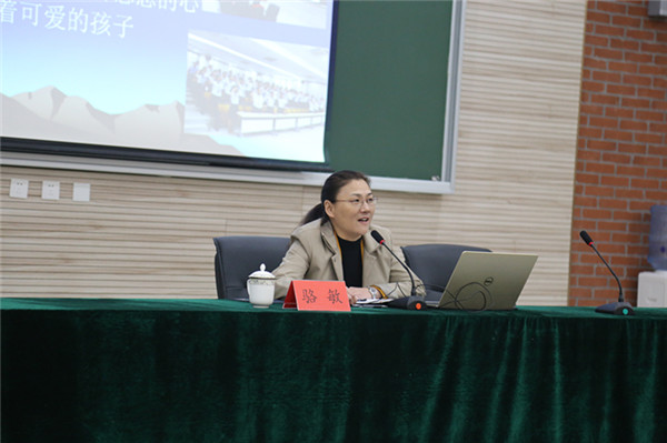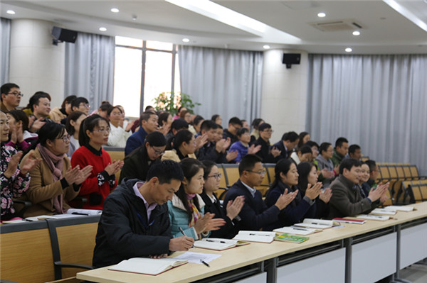 駱敏從“做教師的意義、如何成為學生心目中的好老師和如何成為大家心中的好老師”三個方面給老師們上了一堂別開生面的專業(yè)發(fā)展課。駱敏指出,教師應該具有高尚奉獻、完善自我的意識,特別要從細節(jié)方面、從學生的角度思考,開啟通向優(yōu)秀教師的通道。駱敏認為學生心目中的好老師應該是一名演說家、幽默大師,具有獨特的教學藝術(shù),對孩子能夠真誠贊美、懂得尊重學生、真心關(guān)愛學生。作為好老師,應該修德、修志、修學、修能、修性,有欣賞的眼光,感恩的心態(tài)。