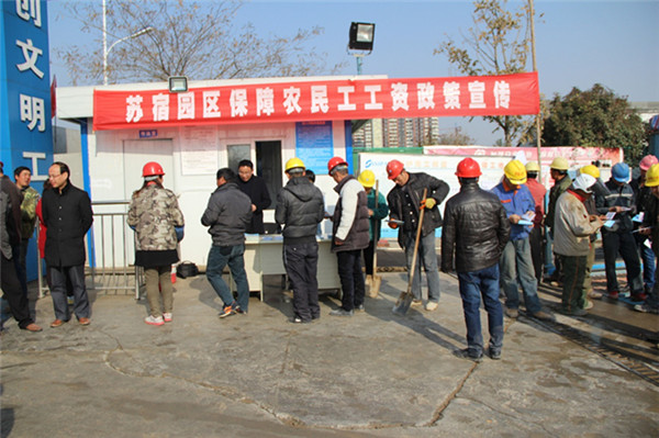 12月2日上午,為提高農(nóng)民工維權意識,園區(qū)勞動保障和社會事業(yè)局、規(guī)劃建設局到碧桂園高層區(qū)項目施工現(xiàn)場開展保障農(nóng)民工工資政策宣傳活動。活動期間,共發(fā)放《教你維權,農(nóng)民工工資案例審編》《信訪手冊》《勞動者維權實用手冊》等相關資料200余份,現(xiàn)場接待群眾咨詢200多人次。